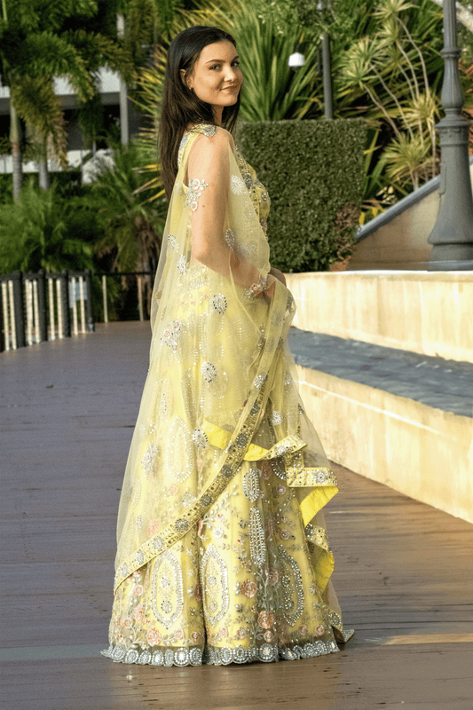 Dreamy Multicolor Floral Mirror Lehenga Set - Lemon Yellow