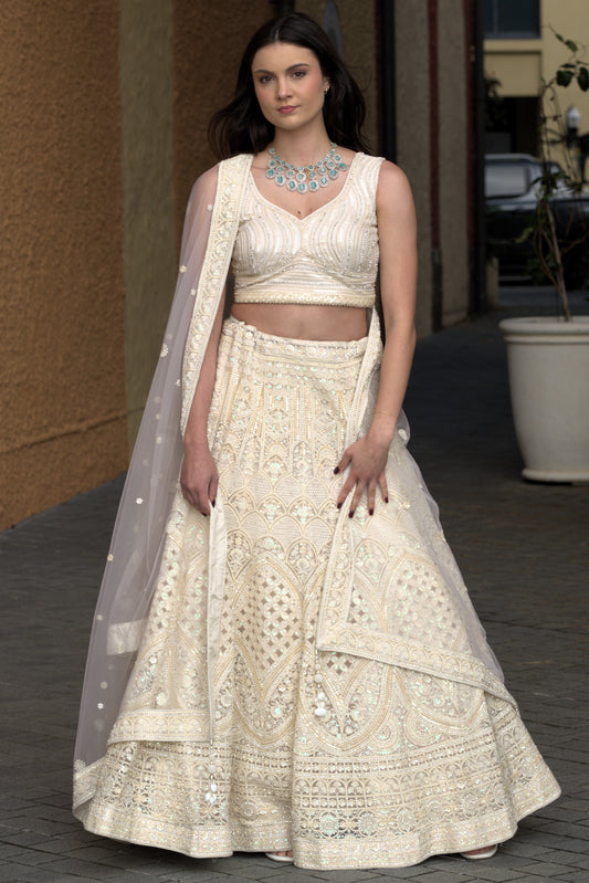 Embroidered Lehenga Set - Ivory White