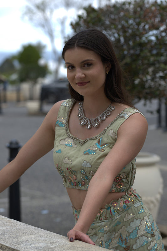 Swan Garden Lehenga Skirt Set - Pastel Green