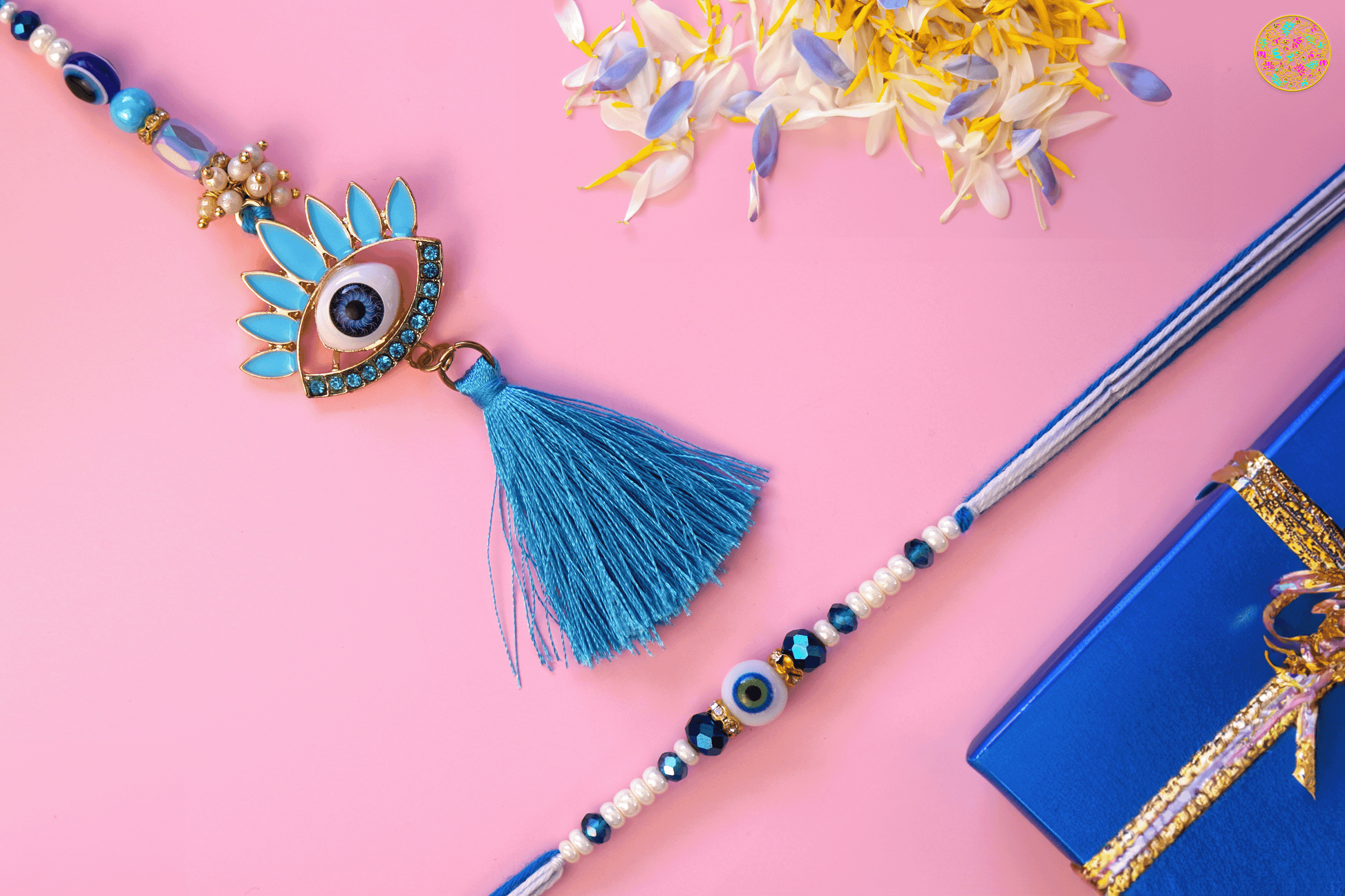 Bhai Bhabhi Evil Eye Rakhi Set - Blue