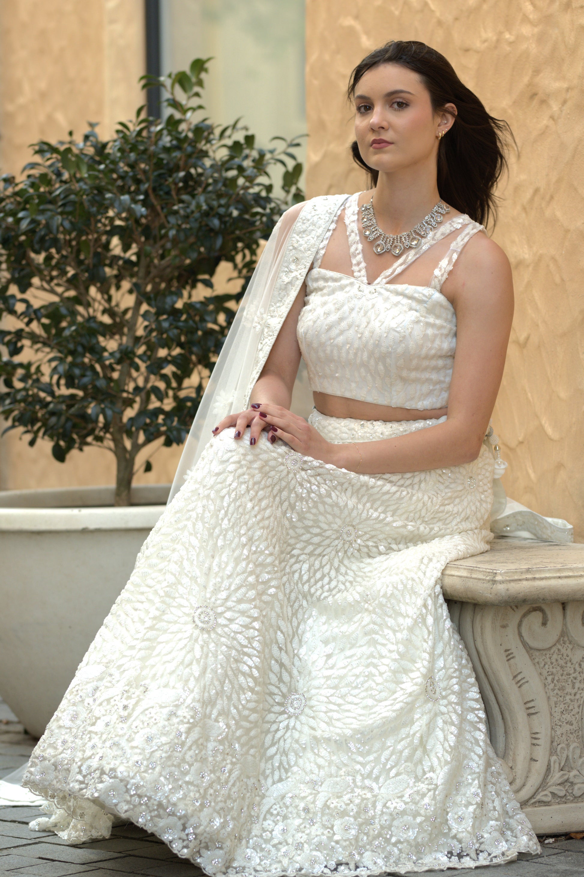 This elegant Bridal Dream White Lehenga Set is a must-have for any modern bride. The intricately designed set features a stunning white lehenga and matching blouse, perfect for any wedding celebration. Made with high-quality materials, this set is both comfortable and stylish, making you feel confident and beautiful on your special day.