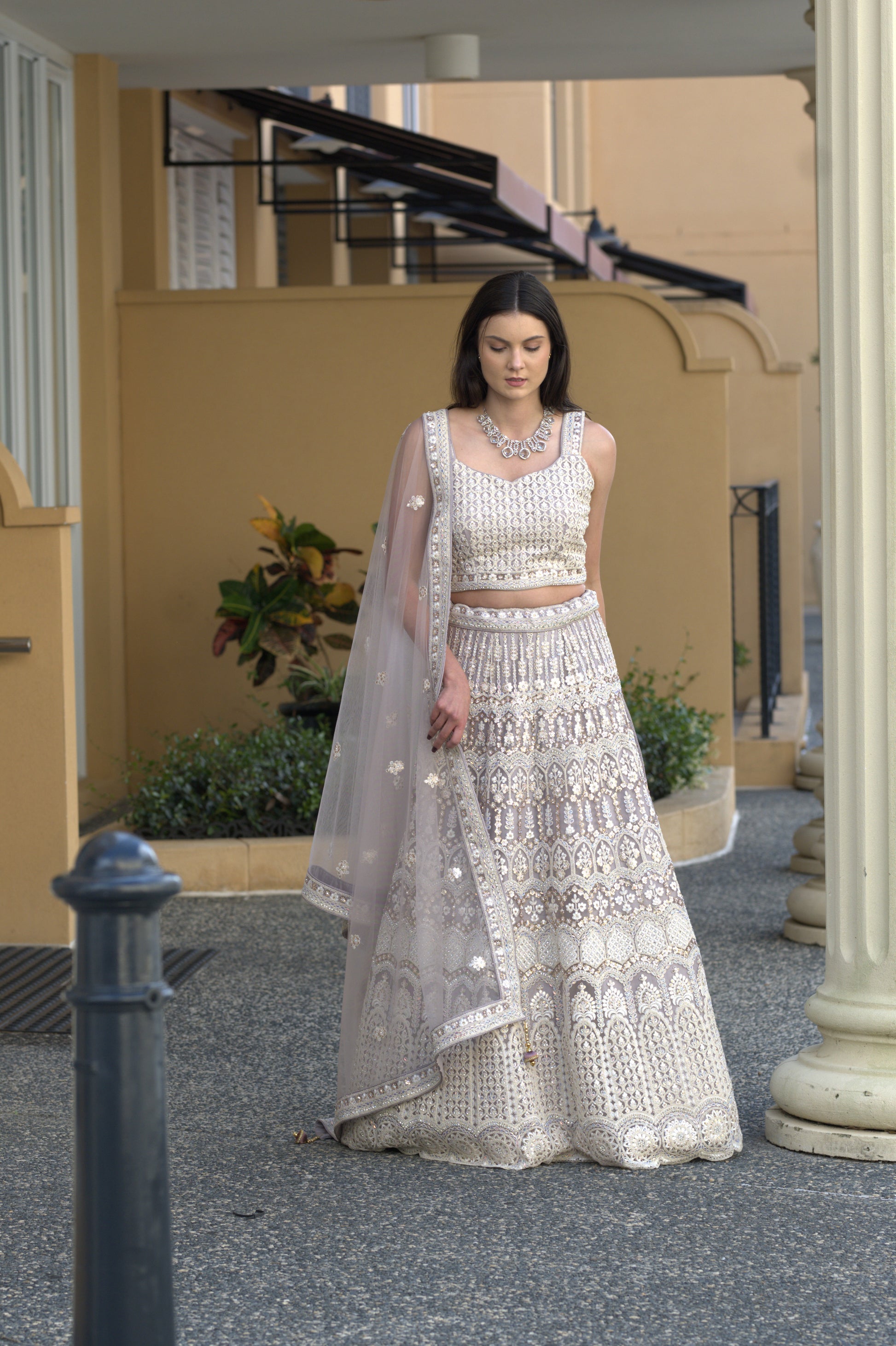 Embrace the opulence of our Lavender Embroidered Lehenga Set. Adorned with intricate embroidery, sparkling rhinestones, and delicate threadwork, this elegant design is perfect for any party or occasion. Inspired by Mughal architecture, the heavy work add a touch of luxury to this exclusive piece.