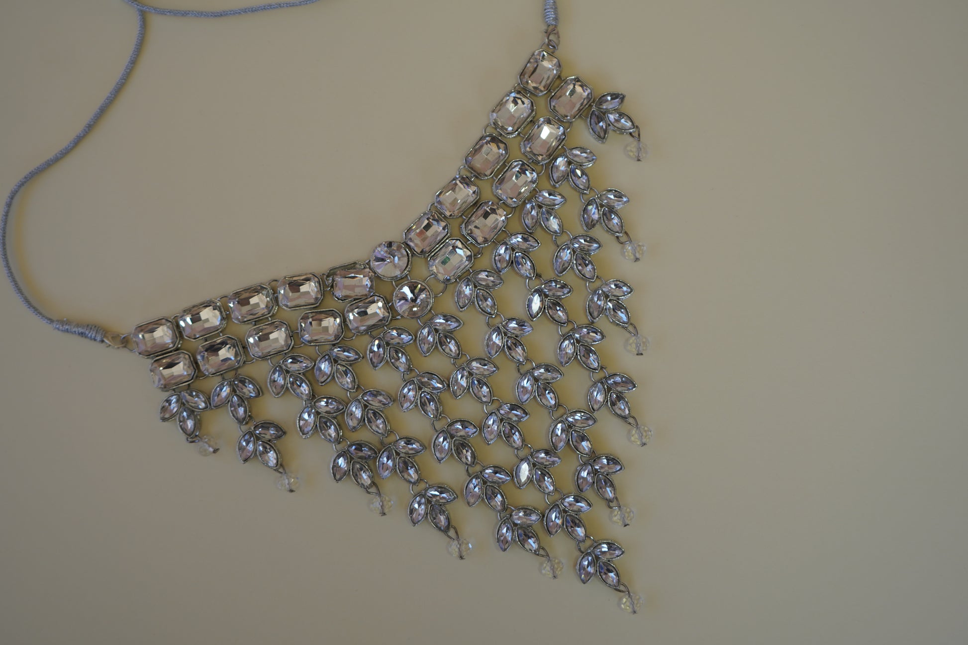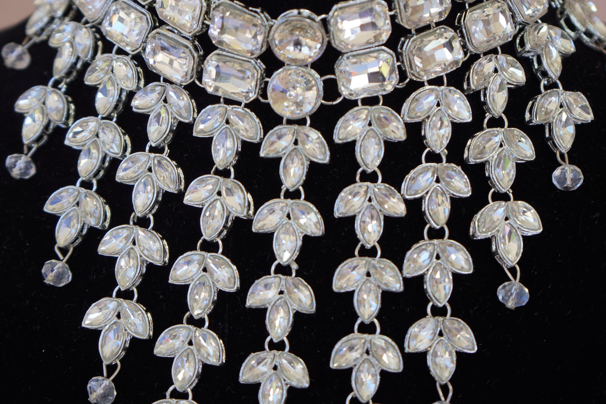 This exquisite necklace and earring set is a masterpiece of crystal craftsmanship, designed to add a touch of opulence to any outfit. The necklace features a cascading arrangement of clear, faceted crystals, delicately designed to create a sophisticated, elegant statement piece. Paired with matching earrings, the set is perfect for elevating your look for special occasions such as weddings, gala events, or any celebration where you want to stand out.