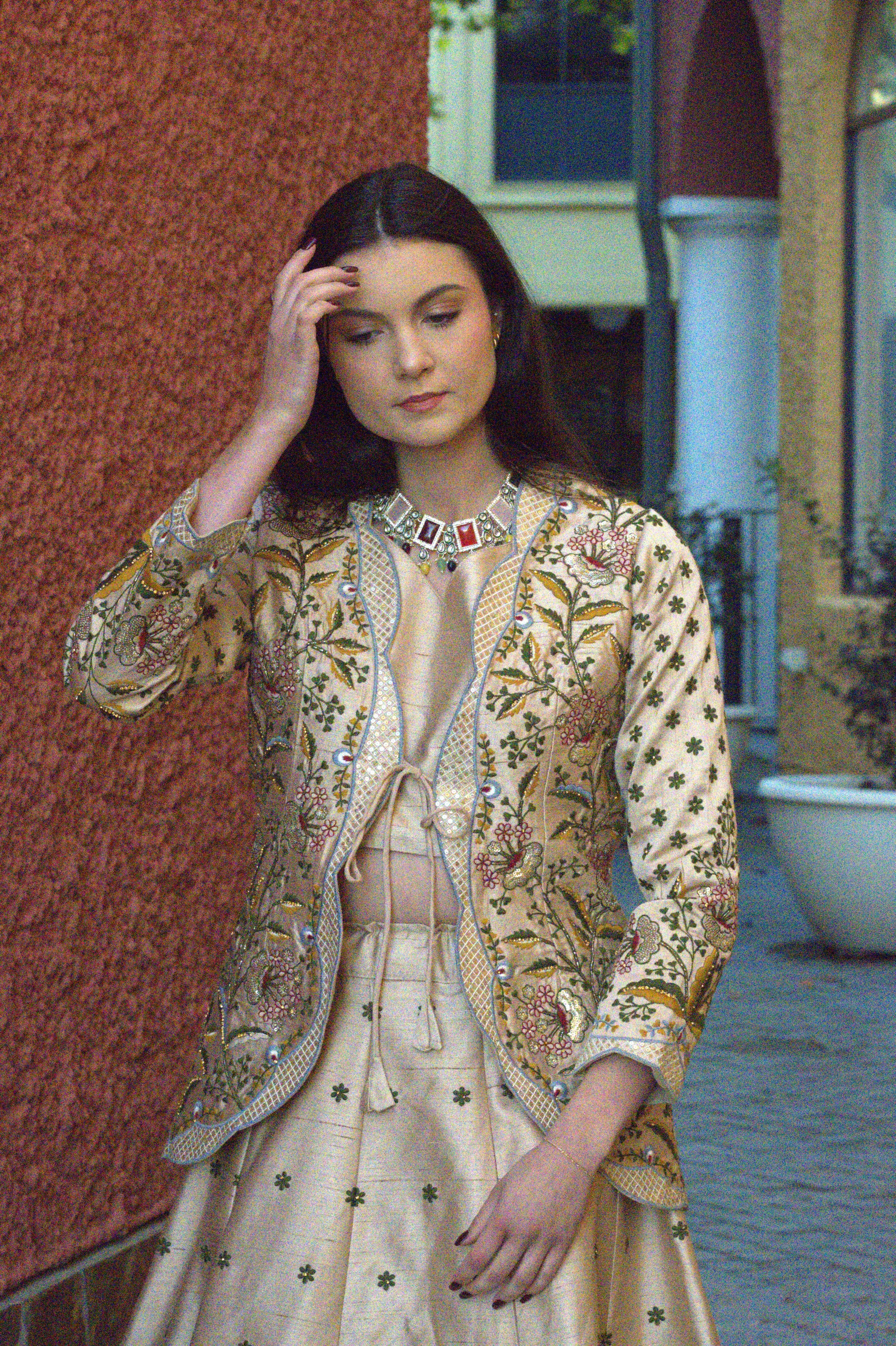 This Gardens by the Bay 3-piece Lehnga/Skirt Set features elegant cutwork and stunning embroidery, making it the perfect statement piece for any party or Diwali celebration. The set includes a jacket for added sophistication. Its intricately designed garden motif adds a touch of grace to this statement-making skirt, making it a must-have for any wardrobe.