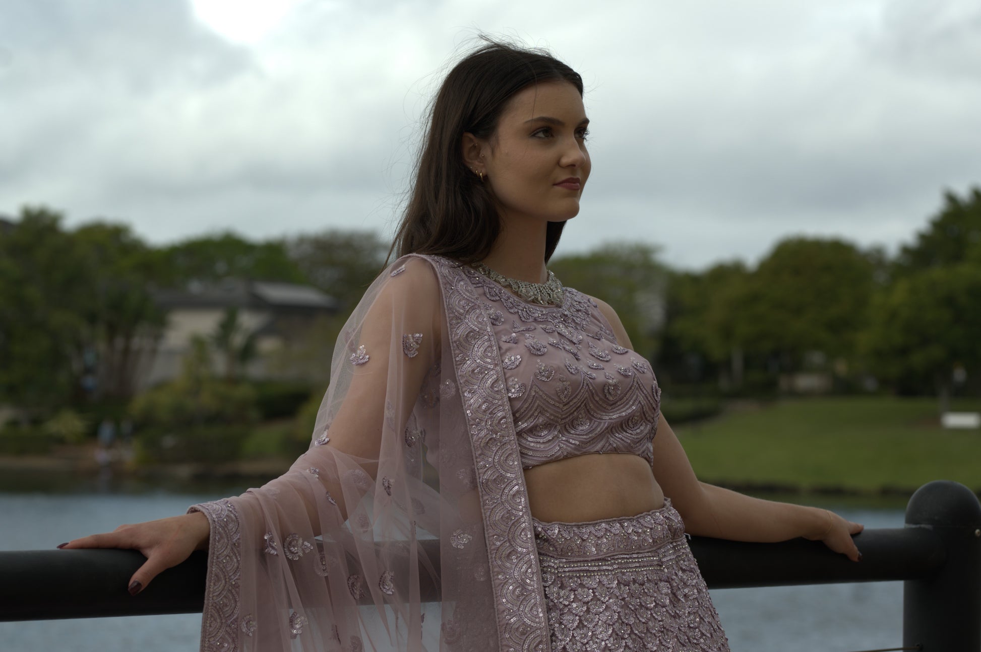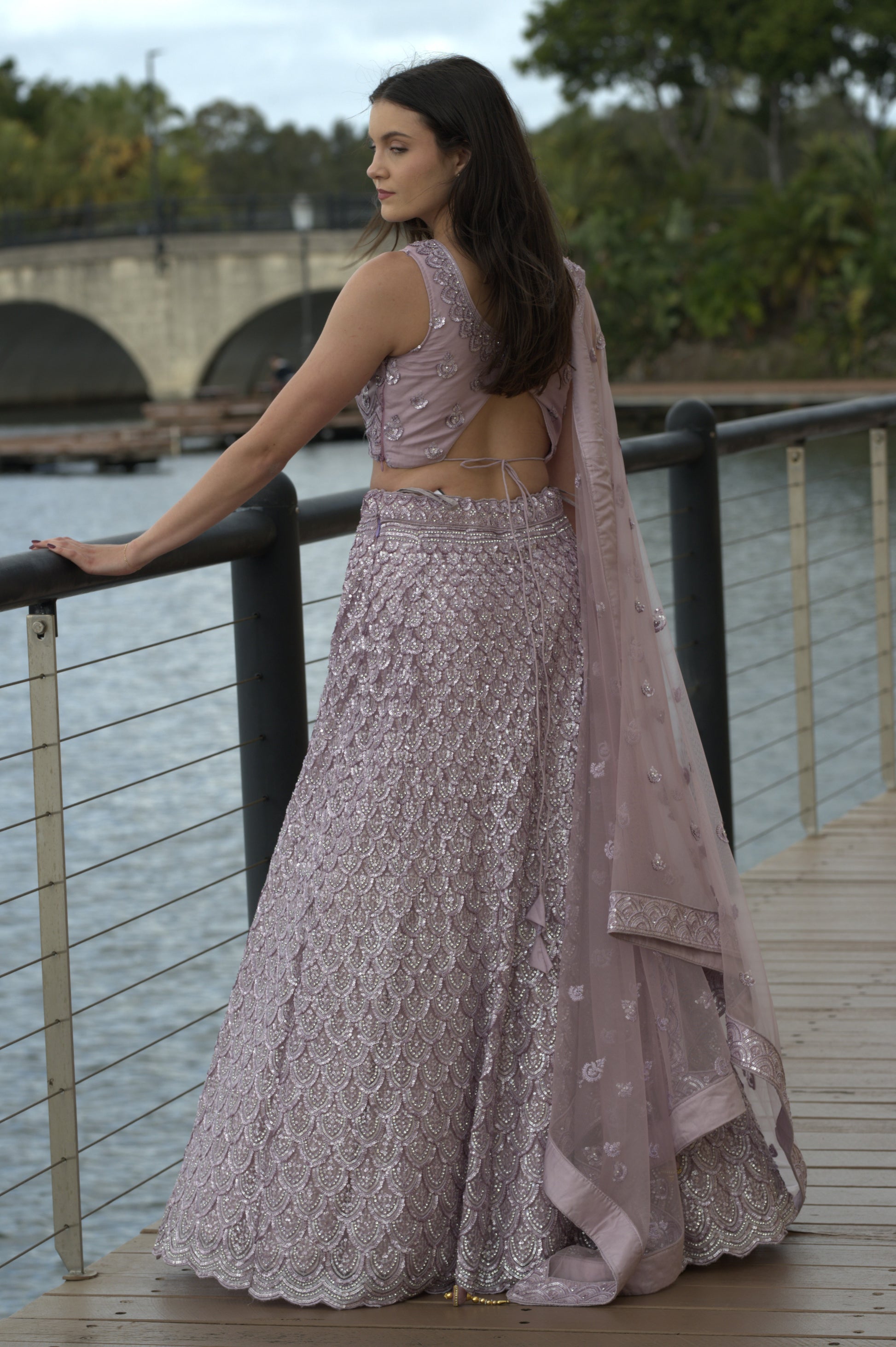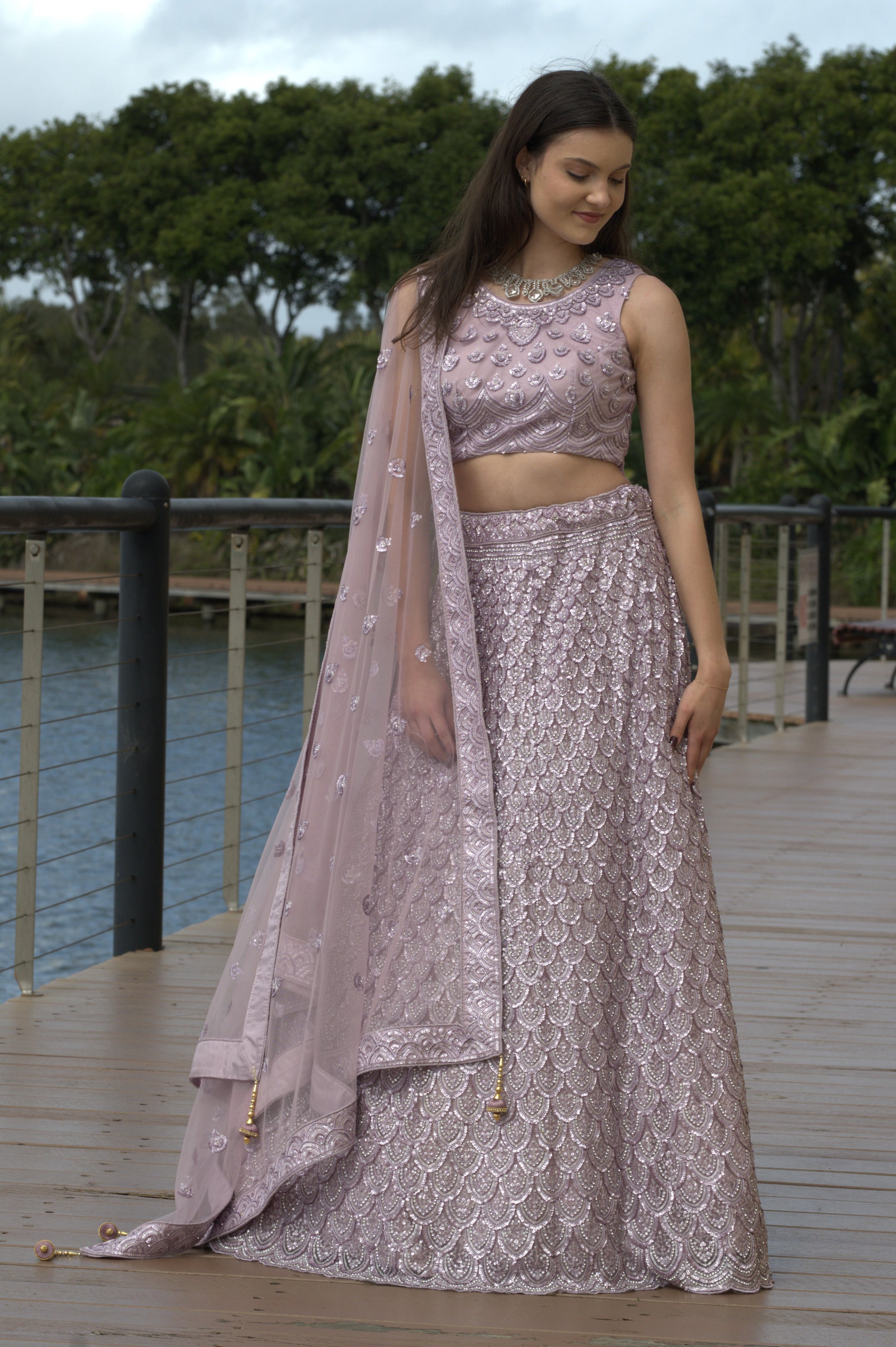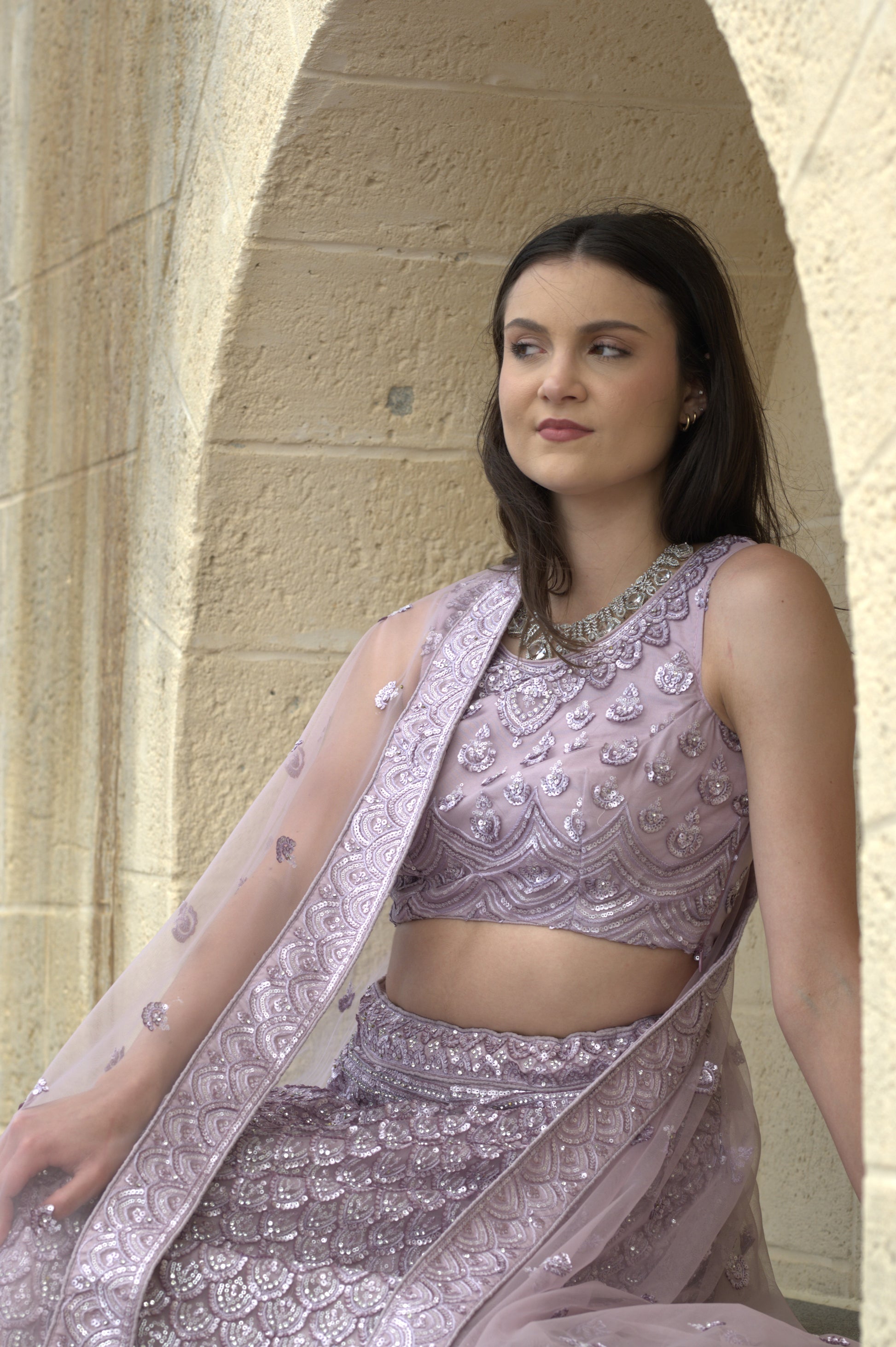 This Lavender Reflector Lehenga Set exudes elegance and romance, making it perfect for weddings, parties, and chic events. Its heavy work design adds a festive touch, while the reflective quality brings a stylish flair. With its stunning lavender hue, this set will make you stand out in any occasion.