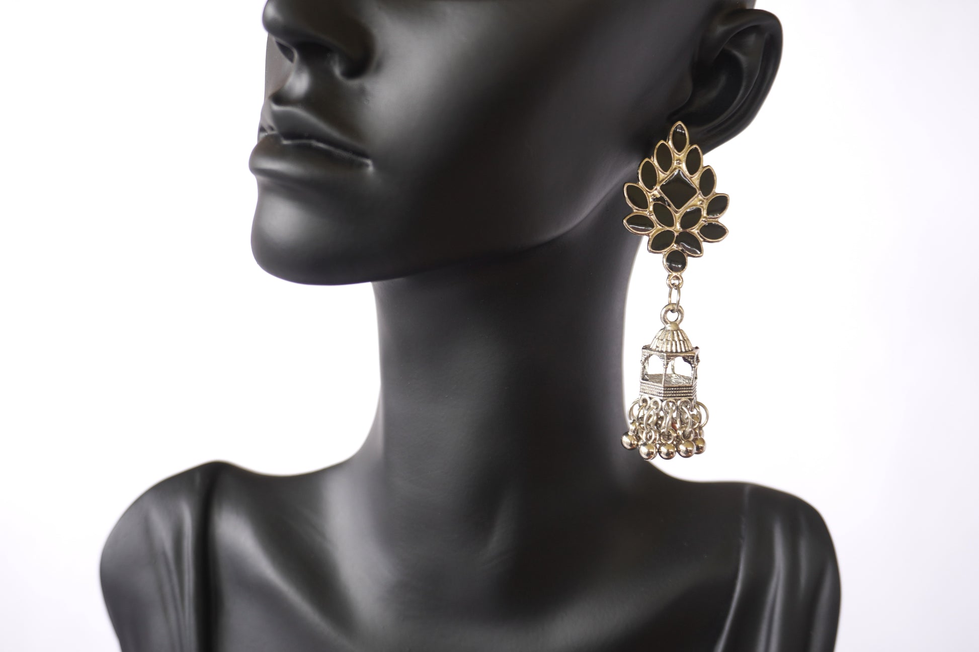 Get the best of traditional and chic styles with our Oxidised Jhumki earrings in black. These unique earrings are sure to make a statement and add a touch of playfulness to your look. Perfect for any occasion, these jhumkis will complete your outfit with a quirky edge.
