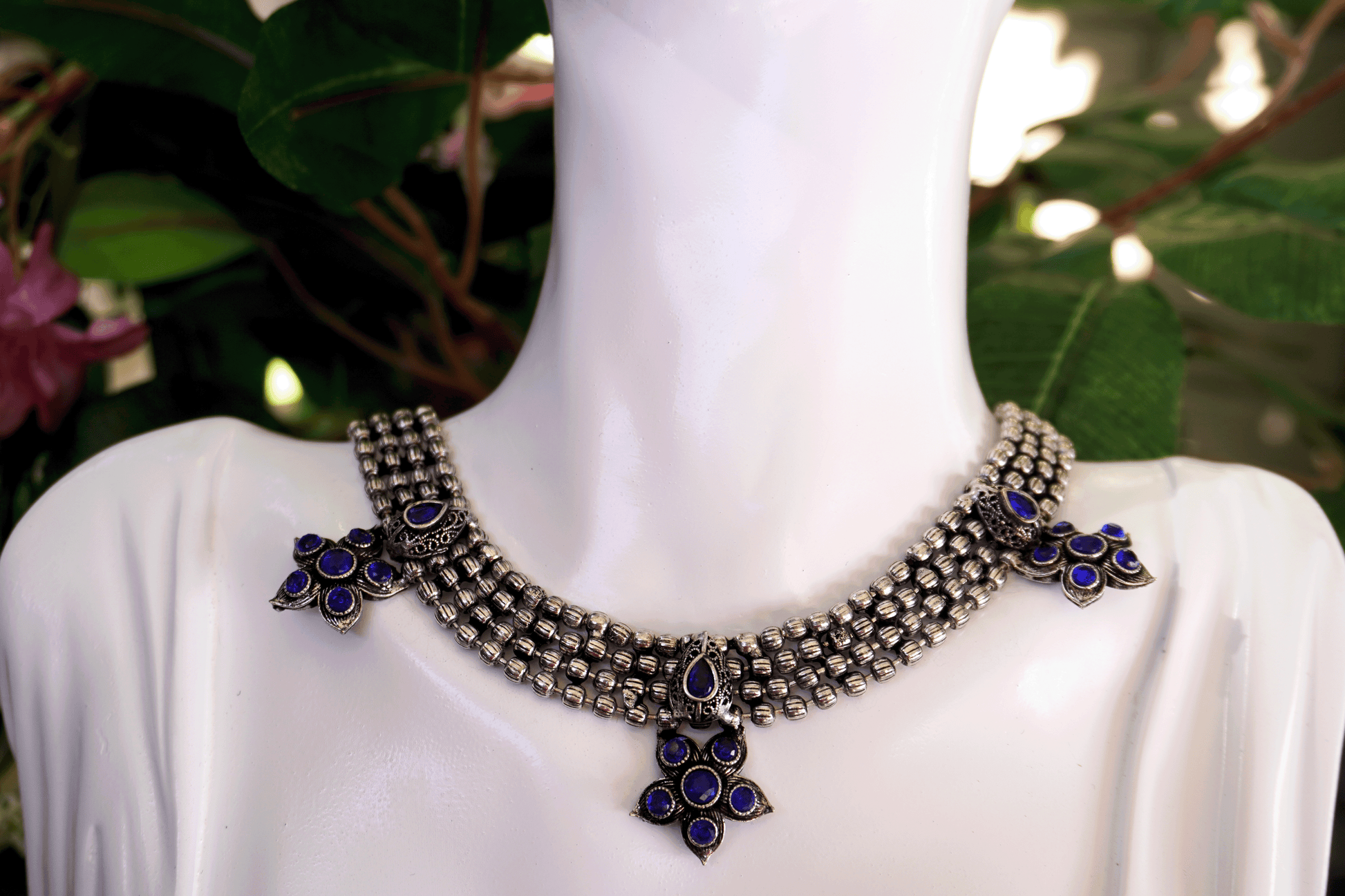 Add a touch of boho style and minimalism to your look with our Oxidised Necklace in Blue. This unique necklace features an oxidised design that is both cute and trendy. Elevate any outfit with this stylish piece.
