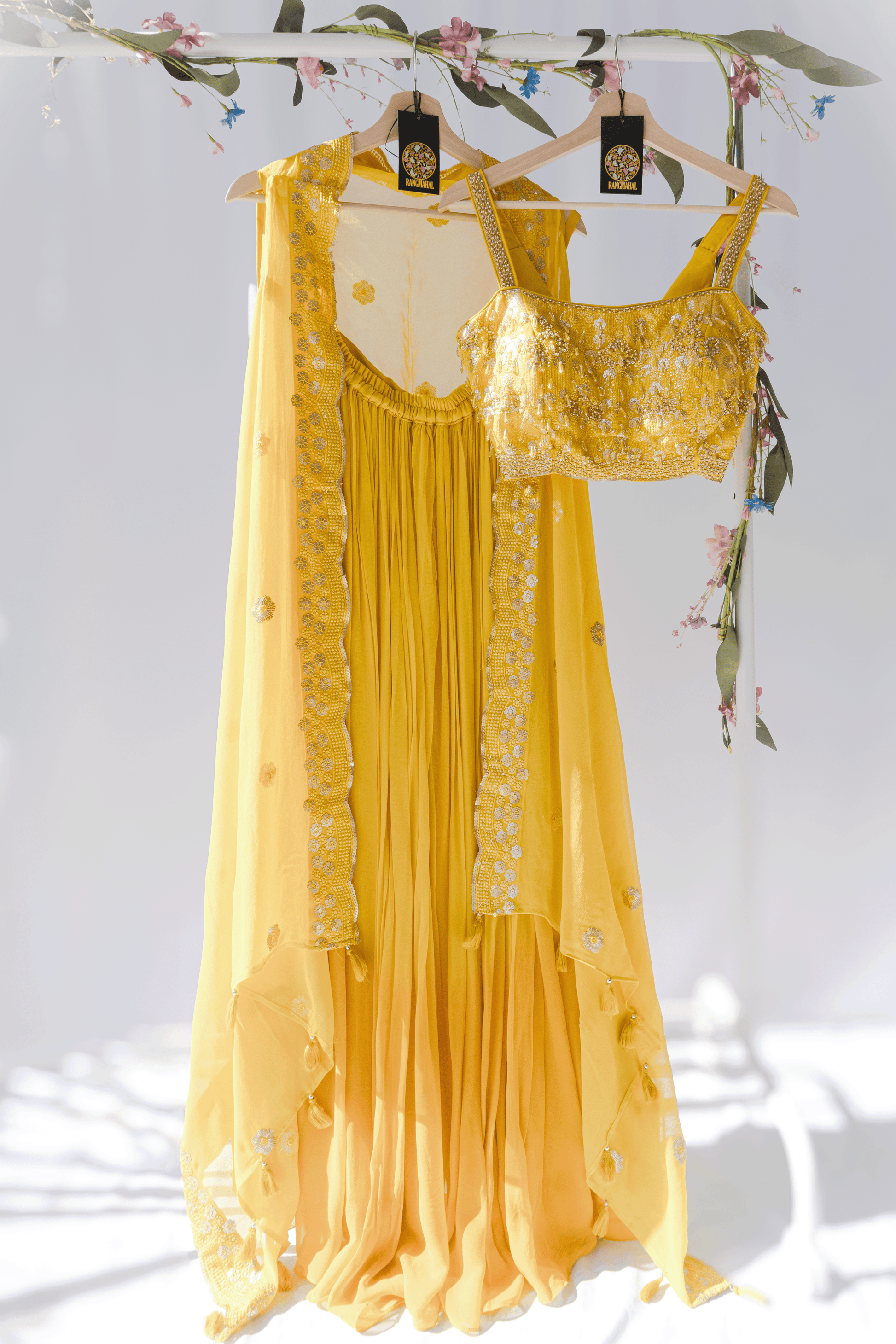 Effortlessly exude elegance and culture with our stunning Sharara Set in radiant yellow. This high-quality set is adorned with beautiful embellishments, adding a touch of royalty to any occasion. Perfect for those who appreciate true beauty.
