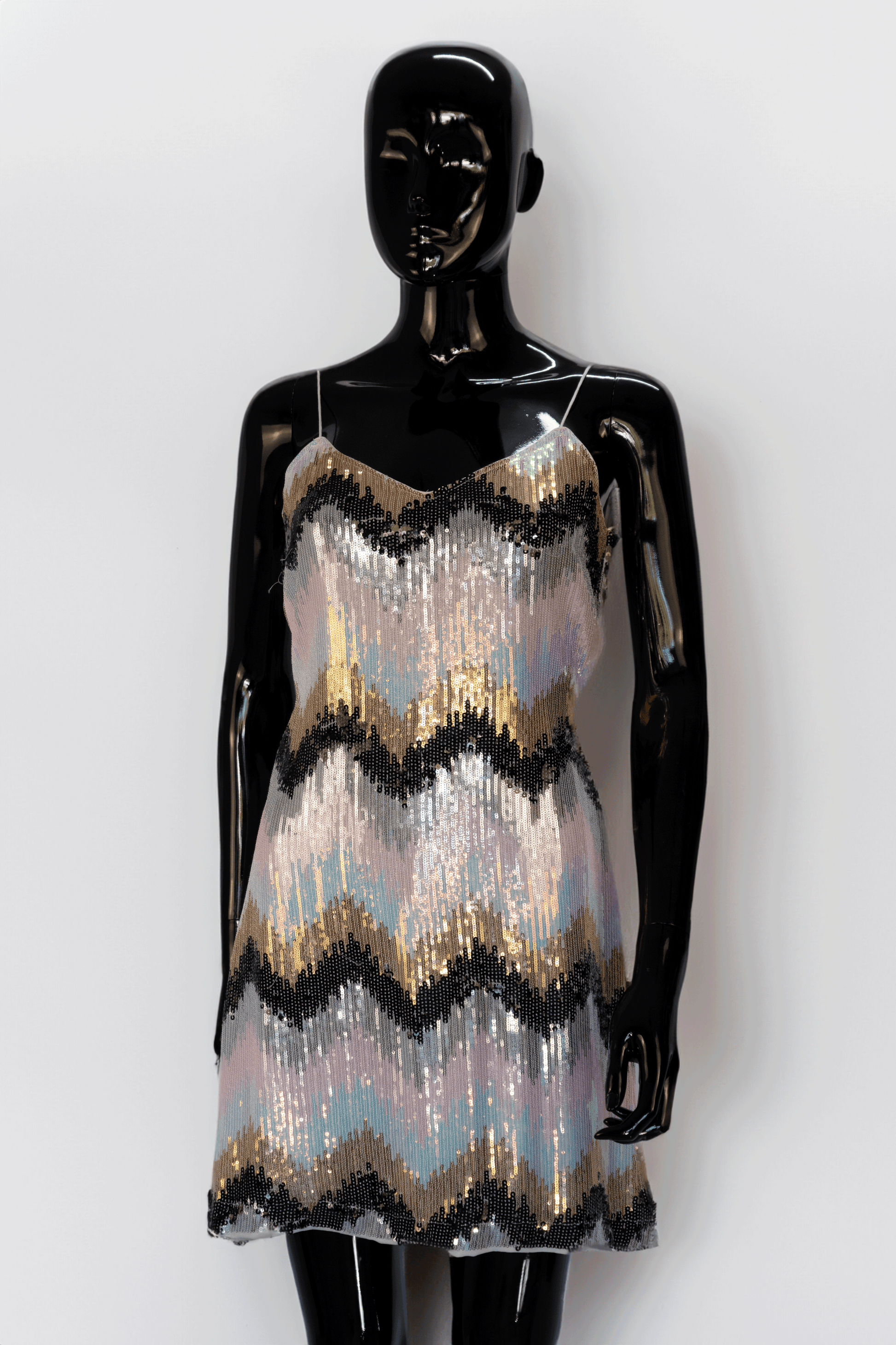 Make a statement at your next event with our Shimmer Sequence Dress! Featuring multicolor waves and a mini length, this dress is sure to turn heads and keep the party going. (Dress to impress with our playful, multicolored Shimmer Sequence Dress! Featuring a mini length and eye-catching waves, you'll be the life of the party!)