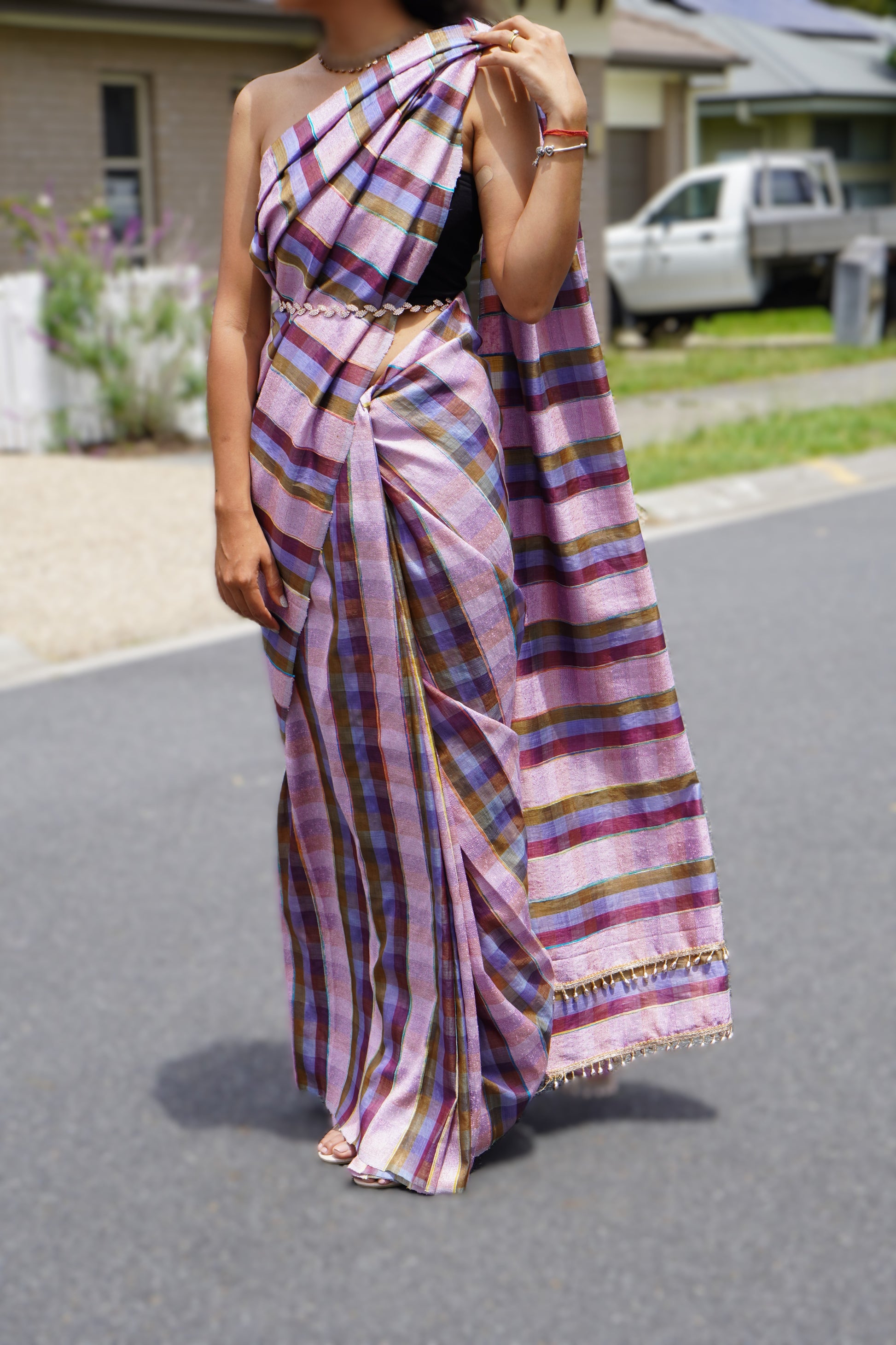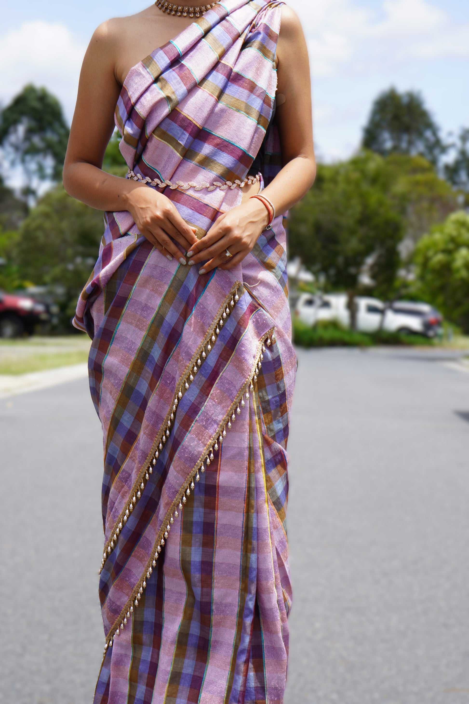 Perfect for casual and semi-formal occasions, the pink check silk saree is a modern twist on a classic design. Its geometric detailing adds an elegant touch, while the festive pallu makes it perfect for any celebration. Whether you prefer minimalist or statement jewelry, this saree is easy to accessorize for a chic and sophisticated look.